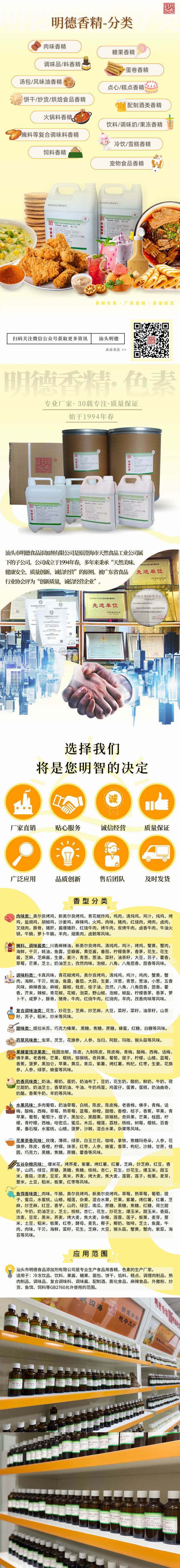 這一系列產(chǎn)品的耐溫性好(耐高溫)、適用性廣、融合度高、香味醇厚。